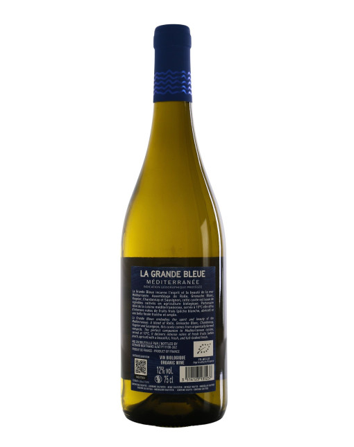 La Grande Bleue est élaborée par Gérard Bertrand, figure emblématique des vins du sud de la France. Elle présente une robe jaune pâle aux reflets légèrement verts. Son nez est expressif, marqué par des arômes de fruits à chair blanche tels que la poire et la pêche, accompagnés de notes d’agrumes et de délicates touches florales. En bouche, la dégustation est vive et rafraîchissante, portée par une belle minéralité qui rappelle l’influence maritime. L’attaque, à la fois ronde et fruitée, dévoile des saveurs de fruits blancs relevées d’une pointe d’agrumes. La finale est longue, élégante et légèrement saline, évoquant les embruns marins.